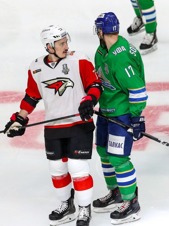 С первых минут матча пошла скоростная игра с небольшим приимуществом Салавата, но Авангард поймал Уфимцев на контратаке и на и на 11 минуте 1го периода Отличился новобранец Омичей Павел Дедунов и вновь равная Игра. После Удаления Умарка, Шумаков розящим броском в девятку удваивает преимущество Авангарда. Но у Омской команды как всегда в этом сезоне случаются провалы в обороне и на последней минуте нападающий СЮ Картает сокращает счет до минимума и сохраняет надежду на победу Уфимцев тем самым Уфа получает заряд на 2-передиод. В самом начале 2-го переода хозяива на 22 минуте матча сравнивают счет это сделал Захар Арзамасцев после чего СЮ как будто получил заряд дополнительной энергии и задавливал соперника в его зоне, но опять Авангард спасает удачная игра в Большенстве на 8-й минуте Вечаслав войнов щелчком от синей лиии забрасывает свою 2ю шайбу в нынешнем сезоне. 2й период прошел с подавляющей игрой Уфы, но удача была на Староне Ястребов. 3 период оказался самым эмоциональным, пос