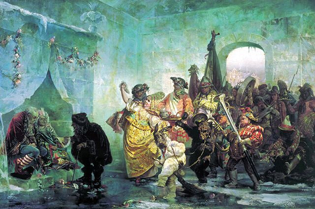 Многие, кто были в Санкт-Петербургском Русском музее, наверняка, приметили одну знаменитую картину В.И.Якоби (1878), которая называется "Ледяной дом". Картина пленяет чем-то не очень понятным. Может быть, сюжетом, может быть, красками, может быть, душой. Однако не зря на нее так часто обращают внимание. Несмотря на чудесные краски, сюжет и душу, картина имеет интересную правдивую историю. На ней запечатлен символ правления русской императрицы Анны Иоанновны.(1730-1740) (Подробнее про нее можно прочитать тут) Да-да, дом изо льда. Именно. Императрица очень любила разнообразные потехи, и в один прекрасный момент ее голову озарила идея создать такое холодное здание. Основная задумка была в том, чтобы построить по самым настоящим чертежам дом из чистого льда для потешной церемонии брака придворного Анны - князя М.А.Голицина и калмычки Авдотьи Ивановны. Да при том не просто оболочку сотворить, но и внутреннее убранство дома. Всем делом заправляла специально назначенная маскарадная комисси
