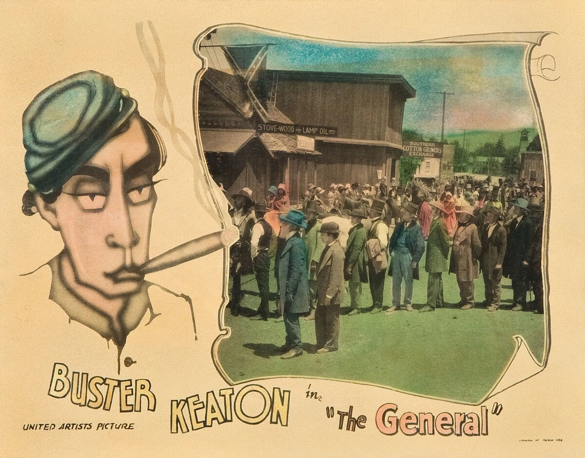 ГЕНЕРАЛ (1927) фильм THE GENERAL США (Buster Keaton, United Artists), 75 мин., немой, черно‑белый (сепия) Режиссеры: Клайд Брукман, Бастер Китон Продюсеры: Бастер Китон, Джозеф М. Шенк Авторы сценария: Эл Боусберг, Клайд Брукман Операторы: Берт Хейнс, Деверо Дженнингс Музыка: Роберт Израэл, Уильям П. Перри В ролях: Мэрион Мак, Чарлз Смит, Глен Кэвендер, Джим Фарли, Фредерик Врум, Джо Китон, Майк Донлин, Том Ноун, Бастер Китон Китон снял несколько фильмов: «Наше гостеприимство» (1923), «Шерлок младший» (1924), «Пароходный Билл‑младший» (1928), которые можно причислить к самым лучшим (и самым смешным) фильмам, снятым в жанре комедии. Однако ни один из них не претендует на самую великую комедию, как нестареющий шедевр «Генерал». Неиссякаемый поток шуток органично вытекает из сюжета и образа героя, он не отделен от драматургии фильма. «Генерал» замечателен превосходным качеством юмора, исторической реконструкции, прорисовкой характеров, визуальной привлекательностью и технической