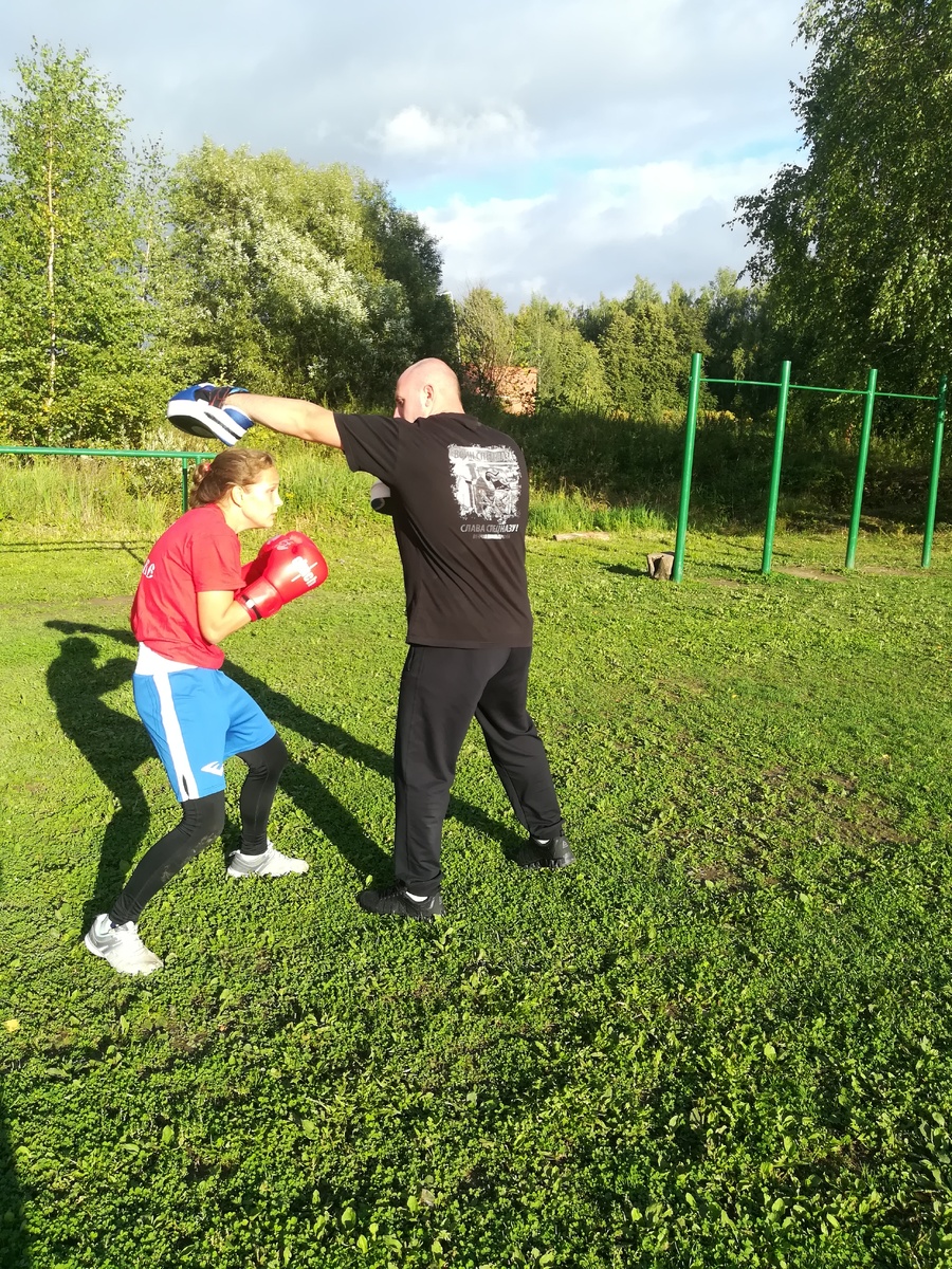 1. Боксер, маневрируя и применяя финты левой (правой) рукой в голову или туловище, выбирает момент для атаки и наносит удар левой (правой) в туловище или голову. Партнер только защищается.