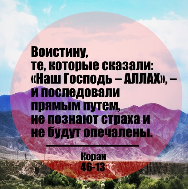 Те, которые сказали «Наш Господь-АЛЛАХ» и последовали прямым путем, не по знают страха и не будут опечалены. /Коран 46-13