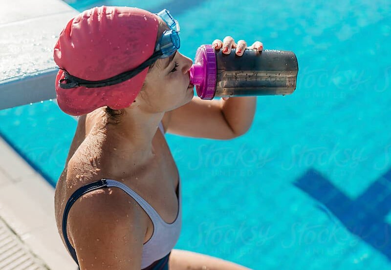 Скорость потоотделения в бассейне значительно ниже, чем на суше, но снабжать организм жидкостью по-прежнему необходимо. Даже сравнительно короткий 45-минутный заплыв может инициировать истощение топлива, и следующее за ним занятие только усугубит проблемы. Спортивные напитки задерживают истощение запасов гликогена и готовят организм к тренировке. Поставьте его в конце дорожки. Проверяйте вес до и после заплыва, чтобы оценить потерю жидкости.