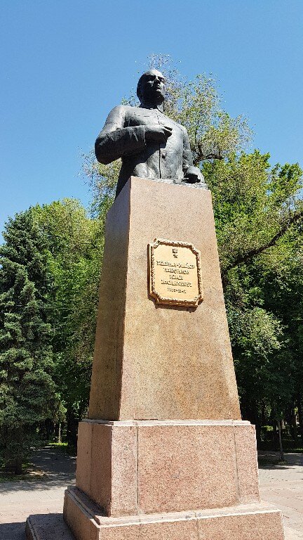 Исправили. Нашли мы с мамой и памятник Жамбылу, и памятник Абаю… По пути даже сфотографировали памятник Тарасу Шевченко. Пока мы искали эти памятники, вдоволь насмотрелись на стихийное бедствие, называемое «перекапывание дорог» и «укладка тротуарной плитки». Пыль, куча грунта, штабеля этой самой плитки… А еще, как оказалось, работы велись на довольно большом участке одной из главных улиц Алматы – улице Толе би, и из-за это складывалось впечатление, что перекопан весь город. Хорошего настроения это не добавляет, скажу я вам…