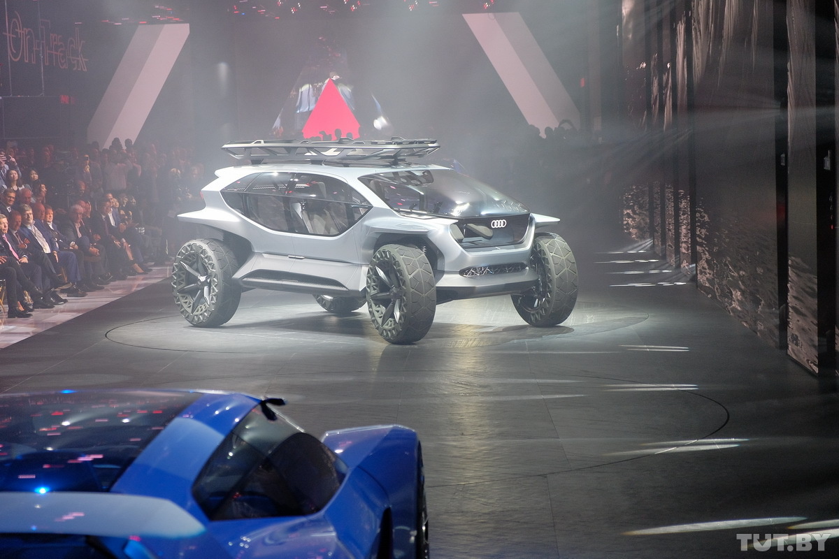 Был здесь и Audi Aicon — концепт двухлетней давности, который демонстрирует, каким может быть полностью беспилотный автомобиль для дальних поездок. Здесь нет руля и педалей, в салоне только огромные экраны и минималистичный дизайн. Мощность относительно небольшая — 354 л. с. Но и автомобиль — не для гонок. По задумке конструкторов автомобиль будет иметь автономность пятого уровня. То есть он способен самостоятельно ездить на мойку или заряжаться.