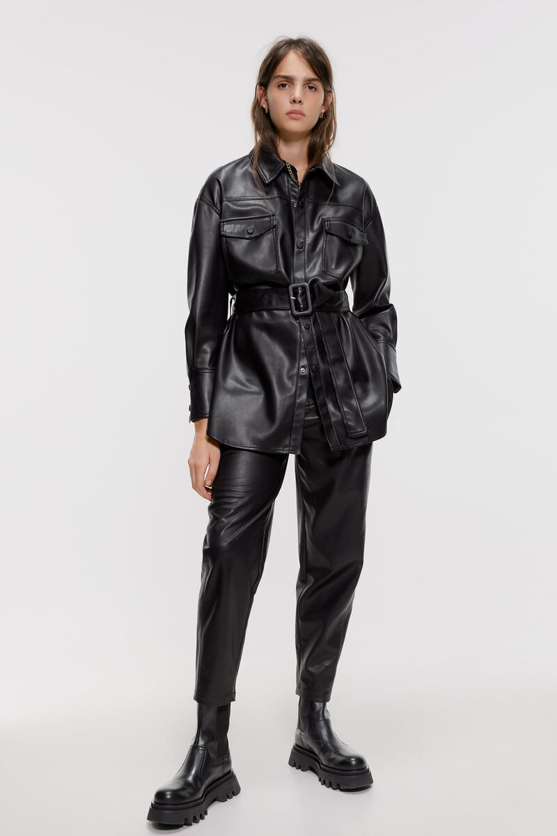 Как можно обыграть один из самых главных трендов сезона - кожаную одежду. Кожа завоевала ума, сердца и гардеробы всех модниц. Это самый яркий и популярный тренд. Из кожи модно все: юбки, платья, брюки, куртки, плащи и даже беретки. При этом кожаные вещи имеют еще и ряд преимуществ перед другими трендами. Например, они легко вписываются в любые образы, добавляют "изюминку" даже простому луку за счет фактуры. Сегодня для вас несколько идей как можно обыграть такие луки в обычной жизни. С трикотажными вещами Самый простой и беспроигрышный способ - сочетать кожу с трикотажными вещами. К кожаным юбкам, брюкам хорошо подойдут уютные джемперы, водолазки, свитеры. Образ получится очень интересным за счет сочетания фактур: грубой кожи и мягкой вязки. С романтичными блузами и рубашками Добавьте к коже рубашку и получится лаконичный, но стильный образ для офиса. А в сочетании с блузой в романтичном стиле - наряд для свидания или праздничного вечера. Добавьте яркие, акцентные аксессуары - и вуаля