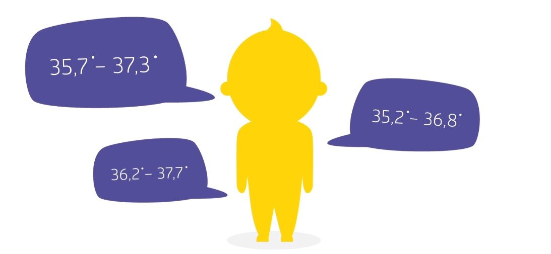 При этом нужно понимать, что нормальные измеряемые значения в разных частях тела отличаются, поэтому если термометр подмышкой показывает 36.6, то во рту он может показать 37.1 и это в пределах нормы.