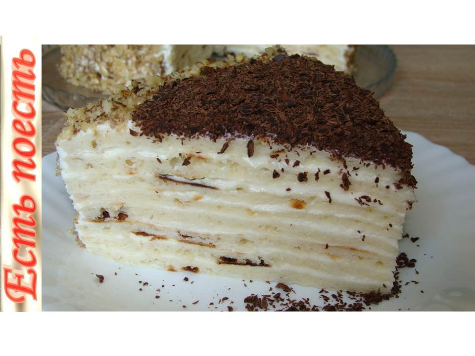 Торт готовится очень быстро, на сковороде. Несмотря на присутствие творога, он совсем не чувствуется. Получается очень мягкий, нежный и вкусный тортик. У меня диаметр сковороды 24 см, если берете сковородку меньшего диаметра, значит, делайте больше коржей, т.к они должны быть тонкими. Растереть все ингредиенты для теста (кроме муки и разрыхлителя) погружным блендером. Добавить половину муки, разрыхлитель, перемешать и добавляя остальную муку, замесить тесто. Разделить тесто на 8 частей. Каждую тонко раскатать (размером со сковороду). У меня диаметр 24 см, если берете сковородку меньшего диаметра, значит, делайте больше коржей, т.к они должны быть тонкими. Лепешки наколоть вилкой и выпекать на сковороде с двух сторон. Дать остыть и обрезать края. Сделать крем: перемешать все ингредиенты миксером. Сформировать торт, промазывая все коржи кремом. Обмазать верх и бока и украсить по желанию. Для большей мягкости можно пропитать коржи молоком. Убрать торт на ночь в холодильник для пропитк