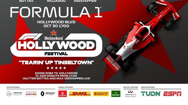 Лос-Анджелес и, в частности, звездный Голливудский бульвар является местом назначения третьего Фестиваля Формулы-1 в Америке. Также было подтверждено, что Валттери Боттас, Макс Ферстаппен и Даниэль Риккардо примут участие в этом выставочном мероприятии 30 октября 2019 года. Целью фестивалей является демонстрация истинного опыта Гран-при, поскольку Формула-1 продолжает расширяться на территории США. После успеха двух предыдущих Фестивалей Ф1 в Чикаго и Майами в начале этого года, Голливудский Фестиваль Ф1 впервые отправится в Лос-Анджелес. Фестиваль начинается во вторник 29 октября 2019 года с открытия автомобильной выставки «Голливудская езда славы» вдоль Голливудского бульвара. Поклонники смогут погрузиться в мир автоспорта, проходя мимо Формулы-1 и легендарных машин на протяжении веков. В среду, 30 октября, фанаты будут угощены волнующим, живым автомобилем с высоким уровнем адреналина, демонстрируя все острые ощущения, которые может предложить вершина автоспорта — Формула-1. Три побе