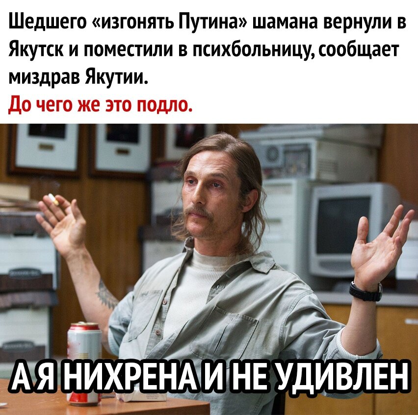 Шедшего "изгонять Путина" шамана вернули в Якутск и поместили в психбольницу. Давайте поддержим шамана.