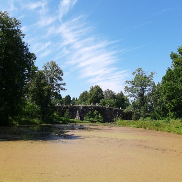Этот мост является творением выдающегося архитектора Н.А.Львова. Свой пятиарочный мост он называл "каменной симфонией". По нему проходила старая дорога из города