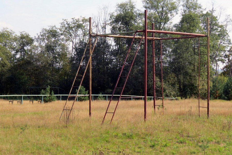 Пару лет назад узнал о заброшенном пионерлагере "Чайка", что располагается недалеко от Колокши во Владимирской области. Там вообще этих лагерей как грязи, но этот - самый интересный т.к. во-первых заброшен, а во-вторых, сохранился чуть ли не в идеальном состоянии. Сказано - сделано. Загрузились в машину и поехали в леса под Колокшей искать нужное место. Найти лагерь в лесу трудновато, благо старый стадион с турничками хорошо видно с дороги Будут ли тут когда-нибудь снова играть в футбол дети? Вход в пионерлагерь на замке Правда, как оказалось это не главный вход, тот находится с другой стороны и в него очень легко попасть, если не сворачивать с дороги, как это сделали мы, а ехать прямо. Дисклаймер И правда, за забором оказалась целая одна будка. Собак не обнаружено. Граница не на замке.. но в покосившемся заборе обнаружен бэкдор. И вот мы уже внутри. Но не стоит обольщаться, в лагере живет сторож, который может и нахер послать. Найди за деревьями лагерь Карта Домики деревянные. Вооб