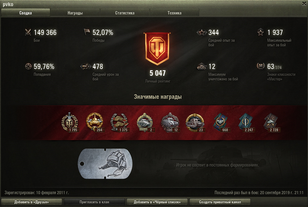 Продолжение темы об аккаунтах людей, которые выделяются из толпы игроков своими цифрами в статистиках. Сегодня начнём с человека под ником pvko. Чем интересен данный игрок игры? Нет, не тем, что у него статистика со 149 366 боями, и не тем, что в столь долгих "отношениях" с игрой он уберег свою статистику от оранжевого цвета. Посмотрите этот скриншот его статистики, а потом второй. Скорее всего, он продал душу, и одним из условий её продажи было - игра на одном определенном танке 😁 И кажется с душой он продешевил потому, что Т-26 далеко не тот танк, на котором можно играть с удовольствием. Хотя, возможно мы сейчас наблюдаем один из кругов ада на яву... 👿 На моём аккаунте в целом даже нету такого количества боёв, как у него на одном единственном танке. Далее, наш следующий персонаж, кажется заключил аналогичную сделку, но слегка другого масштаба, он продал и совесть в придачу. Его статистика, конечно будет посолиднее предыдущего, но учитывая на чем он набил себе процент побед, ста