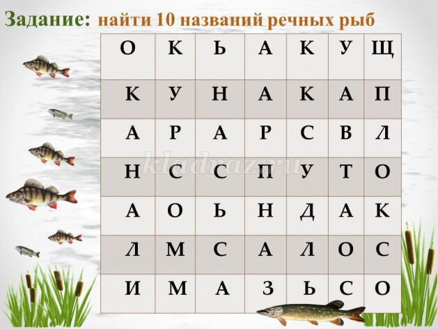 Здравствуйте дорогой читатель! Перед вами РЫБНЫЙ ФИЛВОРД. В нем 10 названий речных рыб. Сможете ли вы их всех найти? Если Вам удалось найти всех, то пишите ответ или ставьте + в комментариях. Всем удачи! Посмотрите, что есть еще интересного на канале! А мы пока подготовим статью с полезной информацией для вас.