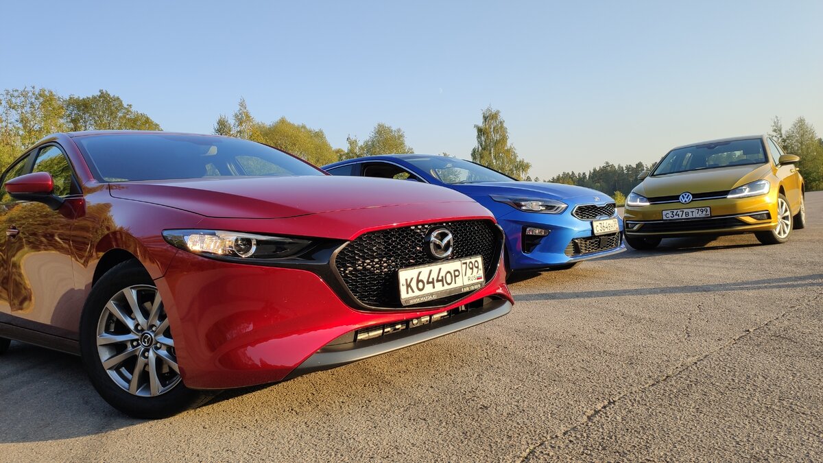 Сегодня у нас тут вечеринка с исчезающим видом гольф-класса. И «хэдлайнером» этой вечеринки будет новая и совсем другая Мazda 3. А проверять её на новизну, будет успешный Kia Ceed и парень, который ну очень правильный. Похоже, что внешне эта тачка была сделана камнем, водой, песком, природой и космосом. Вот, точно, она из космоса. Прилетела, прошла атмосферу и вот, приземлилась недавно здесь. Раньше, это было фитоняшка. Но, со временем, она стала такой «ничоси милфой». На всё готовой, да, она даже пульсирует, когда ты к ней подходишь. И, у неё две выхлопные трубы, настоящие, рабочие. Однако, внешность, получилась довольно противоречивой. Спереди, с одного ракурса это вроде бы, перекрашенная девчуля, с другого какой-то элис купер. Сбоку, мне кажется, как-то не хватает деталей,а сзади у нас просто Аlfa Romeo Вrera. В салоне, каждая деталь, каждая кнопочка, будут вас радовать. Каждое нажатие на что-то, каждый поворот какого-то регулятора, будут вас радовать. Мне кажется, даже если лицо