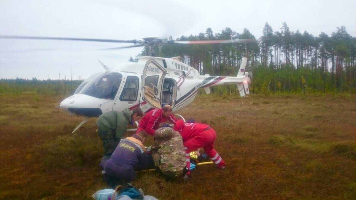Вскоре слышим долгожданный звук винтов. Затем стандартная процедура погрузки и вот она свобода, пострадавшая в заботливых руках медиков, а мы со спокойной душой возвращаемся к месту обнаружения, пьем чай, делимся эмоциями и выдвигаемся через болота и лес к своим машинам. Кто-то едет домой после тяжелого ПСР отдыхать и отсыпаться, кто-то на работу, а кто-то на обучалку по оказанию первой помощи от Красного креста, но это уже другая история....