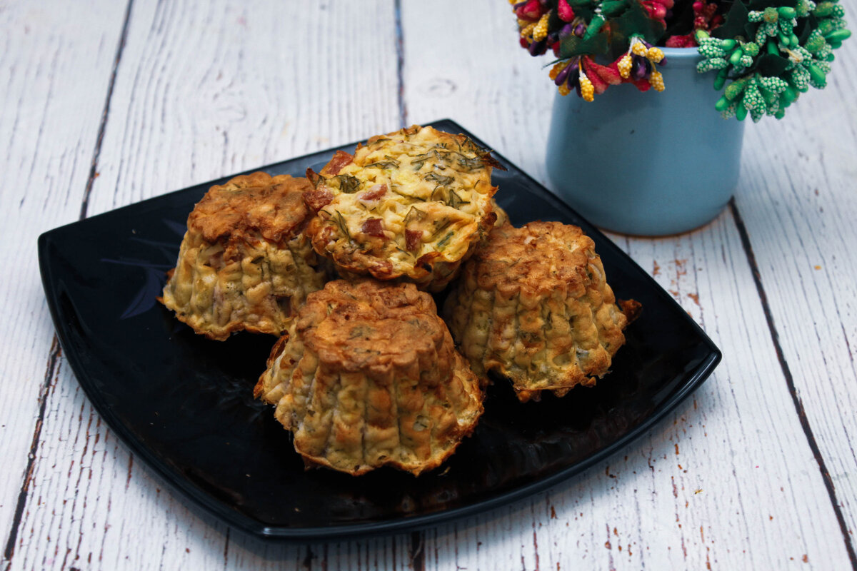 Готовятся быстро а получается очень вкусно. Ингредиенты: Кабачок - 300 г Копченая колбаса - 70 г Мука - 70 г Яйцо - 2 шт. Разрыхлитель - 1 ч.л. Укроп - 5 веточек Соль - по вкусу Приготовление: 1. Кабачки очистить и натереть на крупной терке. Добавить щепотку соли, перемешать и оставить на 10 - 15 минут. 2. Тем временем колбас нарезать небольшими кубиками, укроп измельчить. С кабачка отжать лишнюю жидкость. 3. Добавить к кабачку: колбасу, укроп, муку, разрыхлитель и соль. После добавить 2 яйца и все хорошо перемешать. 4. Разложить тесто по формочкам и отправить в разогретую до 200 градусов духовку на 20 минут.