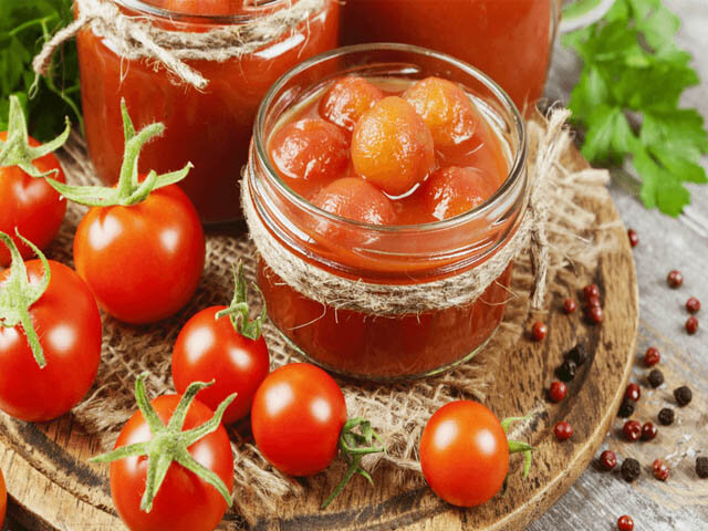 Такие помидоры одно из самых любимых наших солений. Очень вкусный получается и сам сок и помидорки. Еще один плюс, в рецепте нет уксуса, значит можно его считать еще и полезным. Эта заготовка отличная добавка к любому мясному или рыбному блюду, и в то же время, изумительный продукт на основе которого можно делать различные соусы на протяжении всей зимы. Рецепт "Классический" Помидоры - 5 кг Соль - 2,5 ст. ложки Сахар - 3 ст. ложки Специи - по желанию. Маленькие помидоры берем твердые, без повреждений. Их моем и прям целые укладываем в чистые, стерилизованные банки. Как вариант, можно снять кожицу (как это быстро сделать, смотрите в статье "Хозяюшкам на заметку"), но я не снимаю. В кожице помидорки лучше держат форму, а зимой, без проблем снимаются. Укладываем плотненько, но следим, чтоб помидоры при этом не давились, не лопались, не деформировались. И заливаем их кипятком. Оставляем стоять на 15 минут. В это время делаем томатное пюре. Для этого гораздо лучше подойдут мягкие и крупные