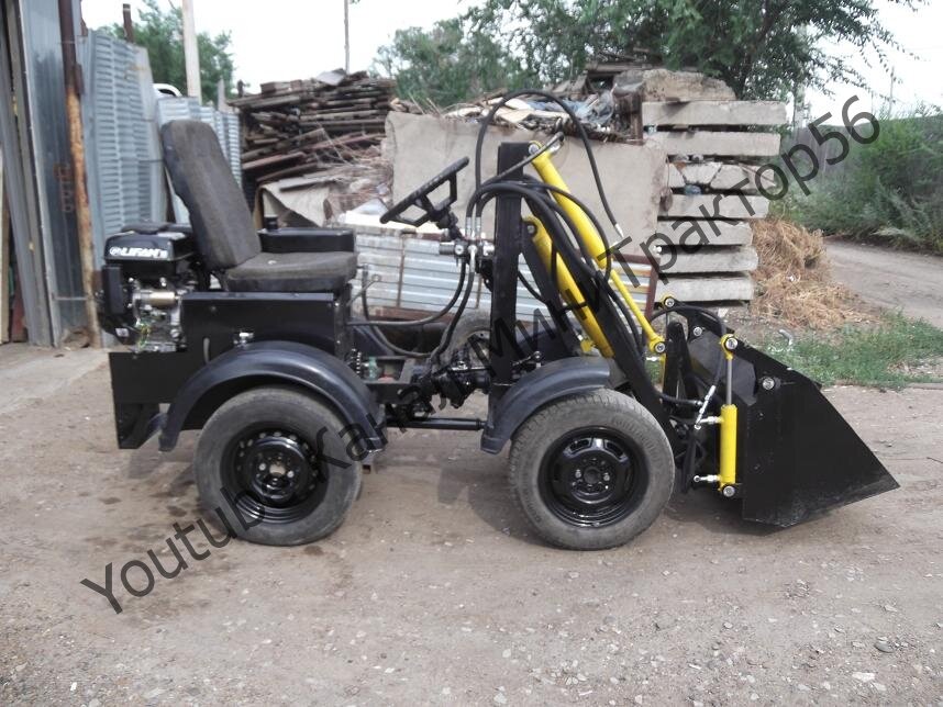Добрый день.Вот и закончен очередной мини трактор-погрузчик,но уже с челюстным ковшом для человека.Осталось пару мелочей, но они еще не пришли, а так общий вид и по технической части готово.Несколько фото со всех сторон.Процесс постройки в предыдущих записях.Видео длинное, аж на 18 минут, так предупредил тех кто не любит долгие видео, постарался последние