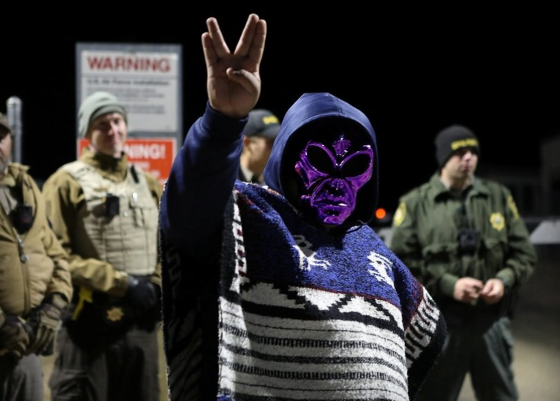 В конце июня на Facebook появилось мероприятие "Штурм Зоны 51". Им заинтересовались почти 2 миллиона человек, что вызвало лёгкую панику на секретной военной базе "Зона 51" в Неваде и совсем нешуточные опасения местных жителей. Они боялись, что 20 сентября тысячи и тысячи человек, которые приедут охотиться на инопланетян, ничего не найдут — тогда они разозлятся и уничтожат город. День Х настал, но никакой многотысячной толпы у ворот военной базы не образовалось — на "штурм" приехали 75 человек, одетых в развесёлые костюмы. На базу никто проникать не собирался: ребята общались, слушали музыку и фотографировались. По итогу "Штурма зоны 51" был арестован только 1 человек — за мочеиспускание возле ворот секретной военной базы. Местные жители выдохнули, военные только посмеивались из-за ограждений, пока участники "штурма" делали селфи. Некоторые из них проехали сотни километров, чтобы поучаствовать в событии, которое обещало собрать сотни тысяч человек. И расстроились: "Я НЕМНОГО РАЗОЧАРОВАН