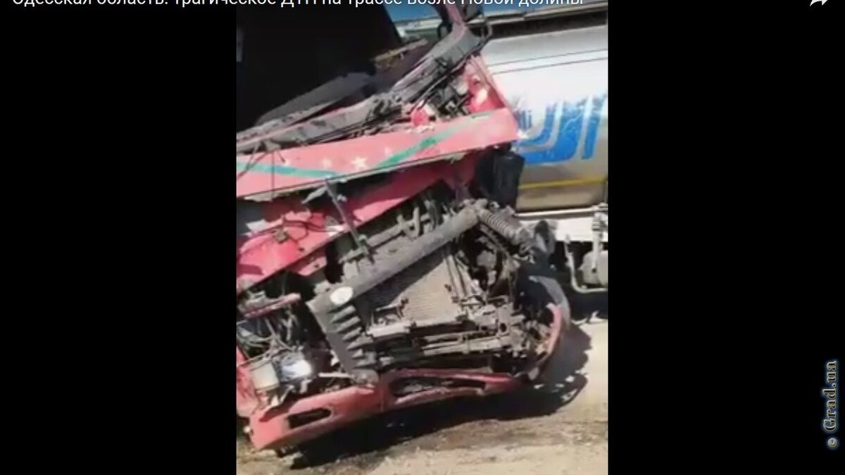 Сегодня на Овидиопольской дороге между селами Новая Долина и Прилиманское столкнулись маршрутка и бензовоз.