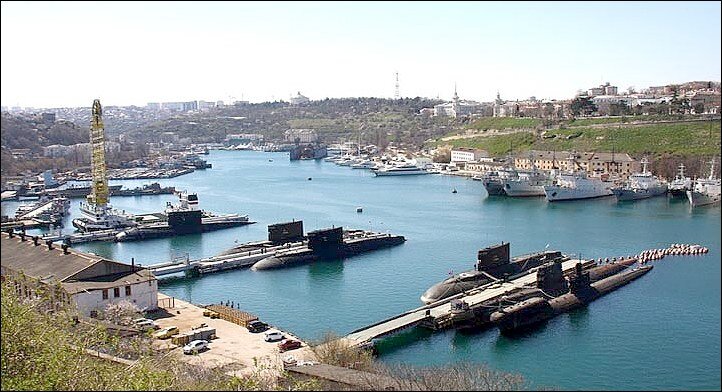 Причалы для военных кораблей обычно находятся на ограждённой, охраняемой и недоступной для посторонних лиц территории, в принципе, её и можно называть базой, но существуют целые агломерации таких территорий. Вот возьмём Севастополь, его тоже часто называют военно-морской базой. Но чего только тут нет! На верхнем снимке расположение подводных лодок в Южной бухте. Напротив размещаются суда вспомогательного флота. ближе к выходу из Южной бухты находится Минная стенка, раньше там базировались миноносцы, а сейчас зачастую десантные корабли.