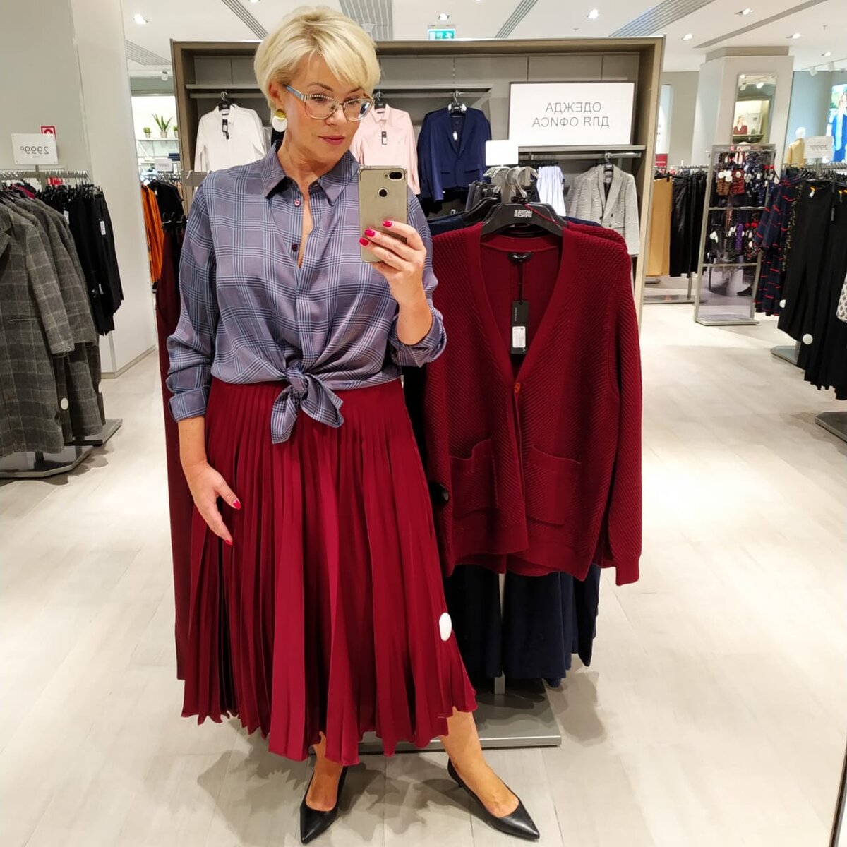 Здравствуйте, дорогие читатели! Многие из вас меня часто спрашивают в комментариях, какой магазин я посоветую девушкам размера плюс. Так вот, один из таких магазинов - это Marks&Spencer, у которого очень широкий размерный ряд (от 40 до 58-60 размера), но при этом вещи красивые, качественные и на любой вкус! Придя в этот магазин, можно составить много стильных и ярких луков, что я и сделала. Некоторыми вариантами делюсь с вами в сегодняшней статье! Не забывайте ставить лайк за мои старания! Первый образ - это юбка дорогого винного цвета + рубашка, завязанная узлом на талии. Конечно, в более холодное время года добавляем в данный образ теплое пальто! Как вам? Пишите в комментарии, какие цвета преобладают в вашем осеннем гардеробе! Лично я осенью, как и во все остальные времена года, очень люблю яркие краски, разбавляющие порой скучный пейзаж за окном, но иногда хочется и чего-то более спокойного. Кстати, для тех, кто интересуется, мой размер одежды 48-50. Люблю, когда вещи немного свобод
