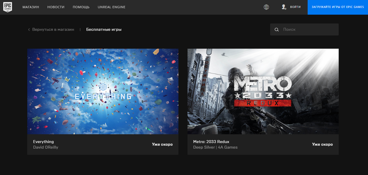 С 26 сентября по 3 октября в магазине Epic Games Store будут доступны две игры - Everything и Metro:Redux, который, на минуточку, в Steam стоит 419 рублей, а в Epic Store будет доступен бесплатно. Подробнее об играх можно прочитать здесь Теперь в Steam от Valve можно продавать игры. Подробнее здесь