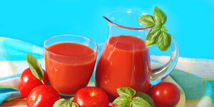 Томатный сок, польза и вред которого будут темой нашей статьи, по содержанию некоторых витаминов превосходит соки из цитрусовых плодов. Он несет в себе вкус и аромат свежего помидора, столь любимые многими. Томатный сок прекрасно утоляет жажду, в нем мало калорий, он снабжает наш организм кальцием. Его советуют употреблять детям, а также тем из нас, кто имеет склонность к полноте. Итак, давайте выясним – чем же важен для нас томатный сок. Польза и вред – чего же больше? Томатный сок, польза и вред – состав сока: Польза данного напитка для нашего здоровья обусловлена содержанием в нем биологически активных веществ: витаминов В, С, Р и каротина (провитамин А), органических кислот, минеральных веществ. Всего 200 г томатного сока по содержанию провитамина А равняются 100 г. моркови. Томатный сок вмещает незаменимые аминокислоты. По содержанию лизина он превосходит подсолнечные семечки, сою и горох. В нем есть фруктоза, глюкоза, соединения йода, натрия, магния, марганца, железа, цинка.