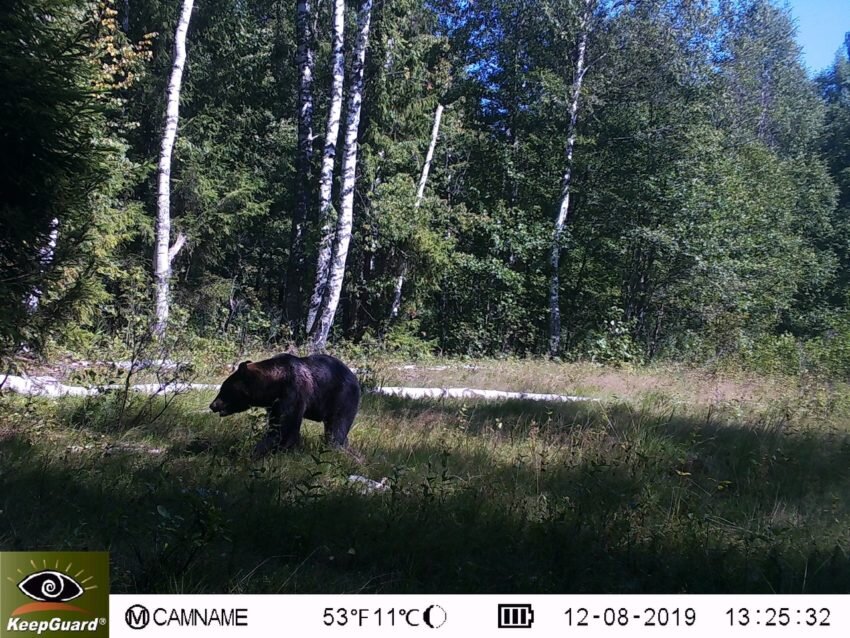 По-настоящему редкие кадры удалось запечатлеть сотрудникам дирекции особо охраняемых природных территорий Владимирской области. В фотоловушку в Клязьминско-Лухском заказнике Вязниковского района попал его главный хозяин — бурый медведь. Краснокнижное животное и самый крупный хищник Европейской части России долгое время скрывался от объективов камер. А все сведения о медведях с территории Вязниковского Заречья поступали лишь в виде устных сообщений от грибников и охотников. Как установили специалисты, мишке около трёх лет. А в целом это лето было очень богатым на кадры животных. Удалось запечатлеть почти все виды крупных млекопитающих, среди которых были лоси, кабаны, волки, лисы и даже рысь. И впервые удалось заснять зубров в летний период. Фото: ГУ «Дирекция ООПТ»