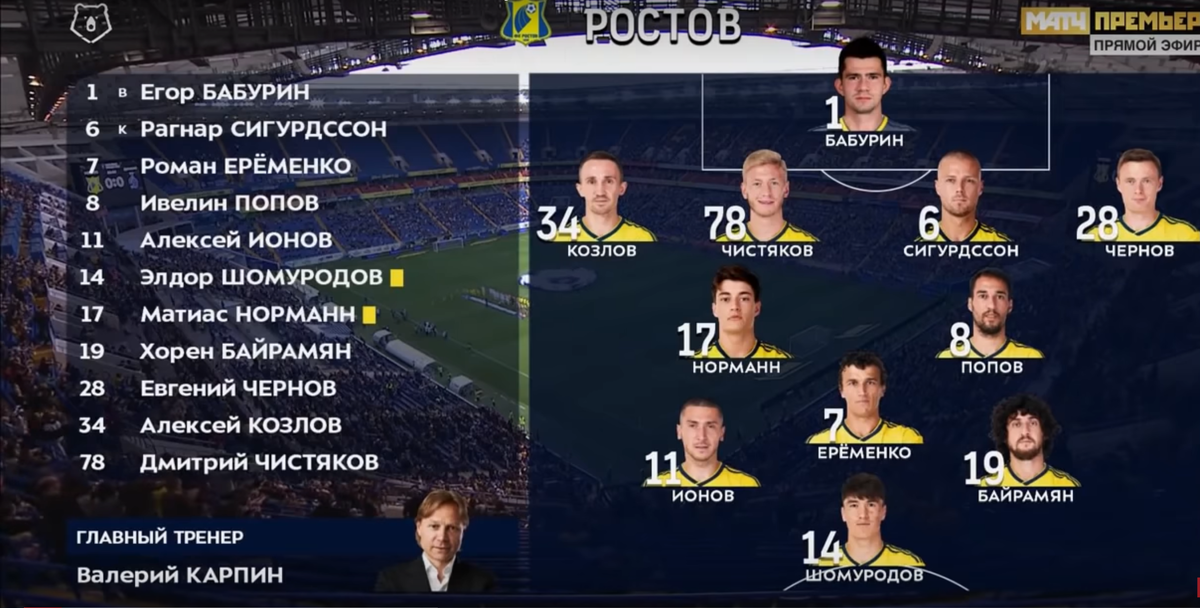 "Ростов" в рамках 11 тура по РПЛ принимал "Динамо". У динамовцев незавидное положение. Последние несколько игр они проиграли, вылетели из кубка, болельщики на взводе и требуют результата, денег потратили они немало на трансферы, но результата нет и Хохлов продолжает руководить командой. В "Ростове" же все хорошо, если не брать в расчет проигрыш команды "Тамбову" в последнем туре, команда демонстрирует хорошую игру, где каждый игрок знает свой маневр. Состав ростовчан уже привычен. на поле были все основные игроки. А в "Динамо" тренерский штаб ищет оптимальны состав, пытаются найти правильные сочетания. В этот раз новичков кроме Шиманьски и Игбуна не было. Команды принялись создавать моменты. На 9 минуте Норманн пальнул из-за штрафной, но немного не попал. Затем по телевизионной картинке показали Павла Мамаева, который наблюдал за игрой. Через пару минут уже пальнул издали Панченко, но тоже мимо. Затем все тот же Панченко с линии полукруга возле штрафной пробил рядом со штангой. Феноме