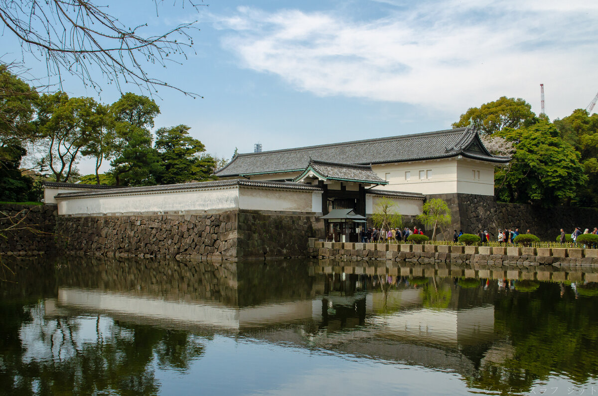Недалеко от железнодорожного вокзала расположен Императорский дворец. Прогуляться до него возможно пешком, пройдя сквозь район высоток, охвативших полукольцом станцию. У ворот посетителей встречает пара полицейских и выборочно проверяет сумки и рюкзаки. В сам Дворец пускают редко и по особым случаям, а гулять по дворцовому саду показалось скучной затеей, поэтому направился вдоль канала в сторону Токийской башни. В Японии почти во всех прудах, каналах, озерах и крохотных аквариумах на улице, перед магазинами, встречается живность - огромные красные карпы, черепахи, различные рыбки и птицы. Вот и у дворца плескались утки и неспешно проплывал лебедь. Императорский дворец расположен на территории бывшего замка Эдо. В конце XIX века в результате свержения сёгуната и реставрации Мейдзи, столицу переименовали в Токио, а замок стали использовать в качестве резиденции Императора. За время существования отдельные строения замка частично или полностью разрушались. В 1873 году пожар уничтожил Имп