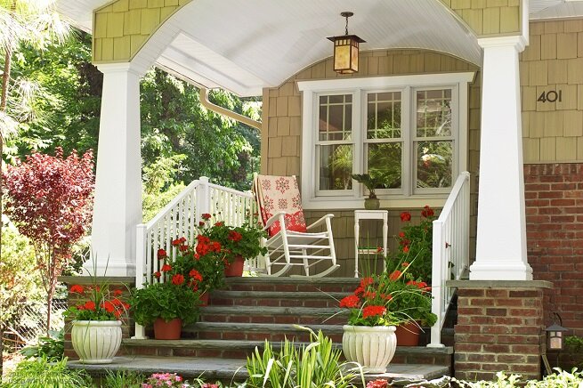 Если театр начинается с вешалки, то дачный дом начинается с крыльца или террасы. Как оформить «лицо» дома по-летнему ярко, красиво, комфортно и гармонично с окружающей природой и внутренним убранством помещения? Балконные контейнеры Украшая крыльцо или террасу дачного дома невозможно обойтись без балконных контейнеров. Сегодня торговля предоставляет дачнику огромный выбор всевозможных контейнеров. Это пластиковые ящики, различной формы и расцветки; напольные, настольные и стеллажные вазы, которые при необходимости легко перемещать на новое место; деревянные кадки в деревенском стиле или, как теперь модно говорить на иностранный манер, в стиле «кантри»; всевозможные подвесные варианты украшения: кашпо, полочки, корзиночки. Важным качеством контейнеров является их лёгкость и отсутствие громоздкости. Это сделает их мобильными, что поможет периодически менять композицию, внося новизну в интерьер крыльца или террасы хотя бы два-три раза в течение дачного сезона. Тяжёлые контейнеры можно о