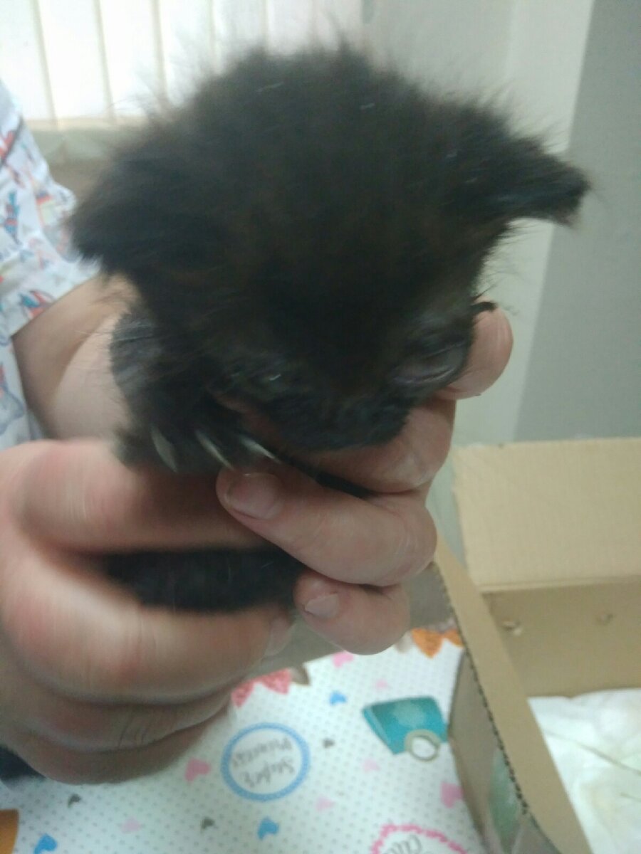 В 18.00 в пятницу 19.09.19г. Малыш и Карлсон прибыли в Пермскую клинику на лечение. После первичного осмотра, стало ясно что к чему и как жить дальше. По Малышке больше всего меня расстроили новости. Котенок соответствует 3-х недельному возрасту, вес в норме, истощения нет, а вот глаза..... К сожалению, Малышка слепая и с этим ничего не сделать, слишком поздно. Почему глаза в таком состоянии? Вариантов множество, какой из низ них точный никто не скажет. Это может быть запущенная герпесвирусная инфекция, могли выколоть (живодеров хватает), может повредили случайно во время игры, ведь у Малышки были братья и сестры, которые пропали, могла попасть грязь и это все загноилось. Зрелище не для слабонервных, даже наш помощник, которая никогда не ругается, увидев котенка, не смогла выразить свои эмоции, кроме как нехорошими словами. На фото плохо видно состояние глаз и это хорошо, не все могут такое смотреть. Не хочу нагонять жути, то что у Малышки такие проблемы не является приговором. Куча ж