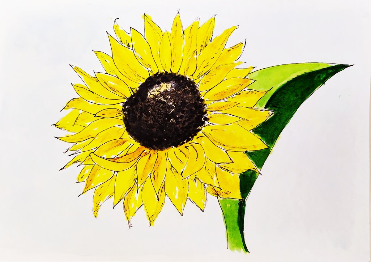 Что делать, когда день завален делами и ты боишься не успеть порисовать? Я в такие моменты рыскаю по сусекам в поисках нераскрашенных скетчей и неизменно их нахожу. Сегодня это кактус и подсолнух. Первый рисунок создавала по видео инструкции и не успела закрасить акварелью. В итоге доступ к уроку закрылся. Сегодня мне пришлось импровизировать и разбираться с цветами и тенями самостоятельно. Для меня пока это очень сложная задача. Но вроде вышло не плохо. Получился кактус не шибко объемным, на зато точно не плоским. Второй скетч это подсолнух. Рисовала давно. Хотелось чего-то то яркого и цветочного. У меня даже сохранились фотографии карандашного наброска и то, как я рисовала линером. А вот уже линер. При раскрашивании скетча использовала 4 цвета. Желтый, охра, синий и черный. Чисто черный цвет большинство художников не любят и не рекомендуют брать. Я в этом плане не послушная. Хотелось убедиться в этом лично. Закрасила середину подсолнечника чёрной акварелью. Вывод: чёрный цв