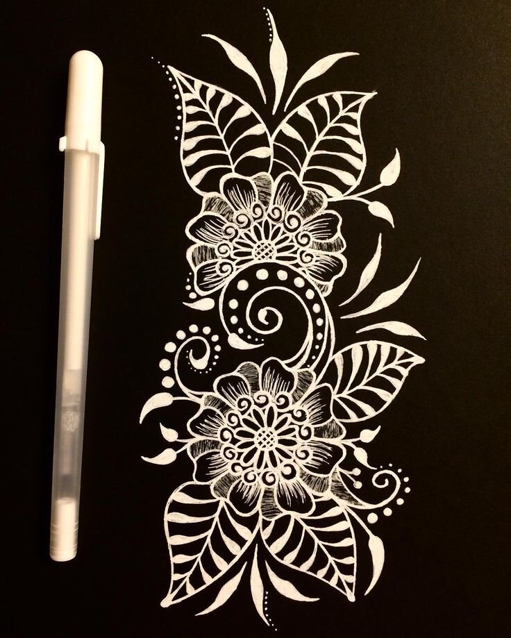 Белая гелевая ручка, вред или польза Все начинающие мастера пытаются всячески облегчить себе задачу рисования и переводилками и трансферами и просто ручками. Очень популярна белая гелевая ручка, приобрести ее можно в канцелярских и художественных магазинах Ей можно набросать рисунок удобным нам инструментом, подправить если что-то получилось не так как ожидали и только потом уверенно рисовать хной или джагуа. Открою вам секрет. Намечать можно и самой хной! 😁 Итак, вот плюсы 👇 А вот и минусы 👇