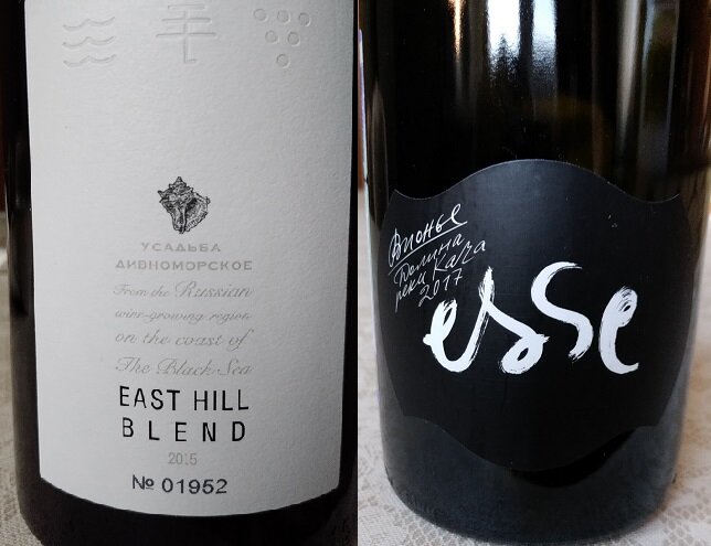 "Дивноморское" East Hill 2015 года, купаж нескольких сортов, но вионье в нём 50%. Строгая, без излишеств, этикетка, говорящая о солидности, номерная бутылка.