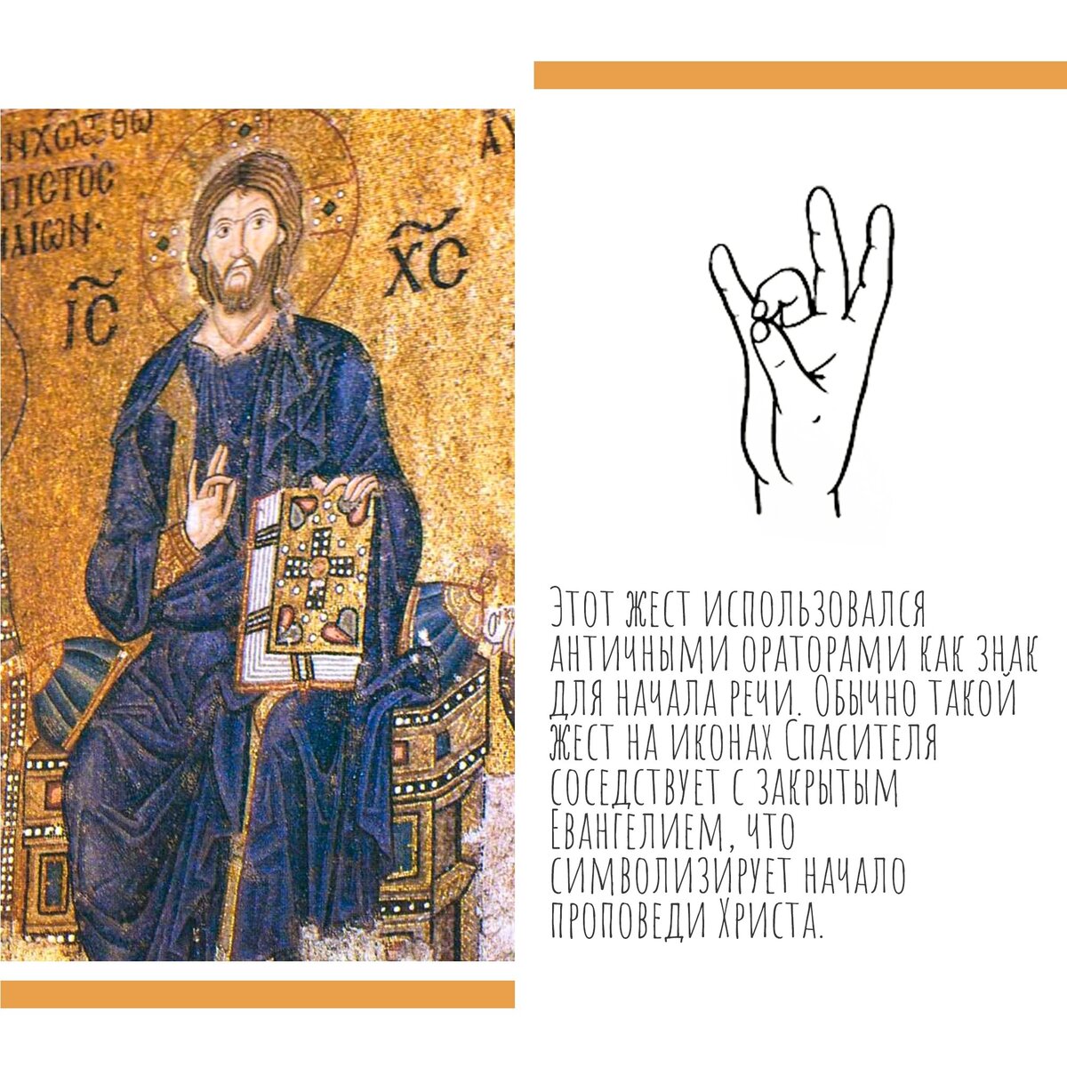 Жесты на иконах Простой и наглядный материал о жестах на иконах и фреске. Слайды найдены на просторах интернета, кто автор – определить не удалось. Информацию о жестах я встречал в разных источниках, иногда в более развернутом виде, так что написанное на слайдах для меня новым не было. Но оформлено все замечательно. Если вам понравился материал - ставьте лайки. Тогда его увидит еще больше людей.