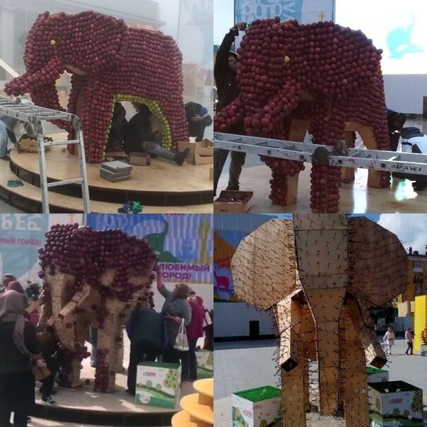 В Ставрополе местные жители растащили арт объекты, установленные на площади в честь Дня города. Украли всё: яблоки, хлопок с арки и даже сено. И это ещё не всё – вдобавок посетители оборвали цветочную арку и поели крону дерева, сделанную из сахарной ваты. После поднявшегося обсуждения в соц.сетях некоторые жители города начали приносить свои яблоки и реанимировали слона. Спасибо за добавку, так сказать. Неча добру пропадать.