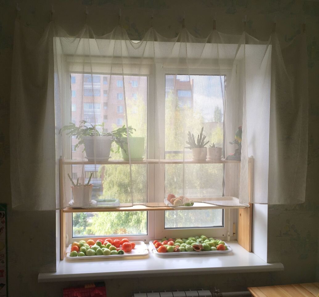 - В нишу окна требуется добавить 2 полки шириной по 20 см, высота от подоконника и между полками - 30..35 см