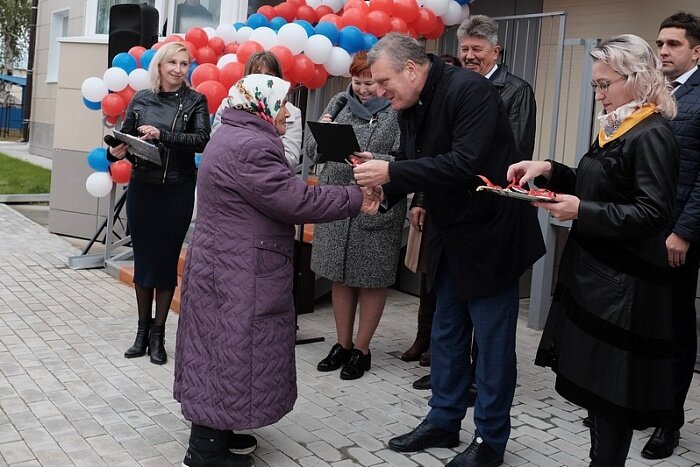 21 сентября состоялось торжественное открытие нового многоквартирного дома в поселке Красная Поляна Вятскополянского района. Квартиры в нём получили 24 семьи. Все они стали участниками программы «Переселение граждан из аварийного жилищного фонда». Поздравил переселенцев и вручил ключи от новых квартир лично глава региона Игорь Васильев. На мероприятии присутствовали также министр строительства Кировской области Роман Бондарчук и главы муниципалитетов. На строительство нового дома в Красной Поляне было выделено 36,7 млн. рублей, из которых 27,1 млн. — это средства Фонда содействия реформированию жилищно-коммунального хозяйства. Новое жилье возвели из газосиликатных блоков и железобетонных конструкций повышенной прочности. В дом проведены все необходимые коммуникации: водопровод, канализация, электричество, централизованное отопление. Для обеспечения жильцов горячей водой в каждой квартире установлены электроводонагреватели. — Дом, который мы сегодня открываем, построен п
