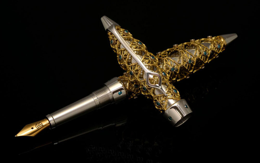 Золотая ручка Золотая ручка The Goldsmith Jack Row Pen украшена россыпью бриллиантов в 0,90 карат и узором из серебра. Сложно поверить, но и на такой аксессуар стоимостью 43 тыс. долларов есть спрос.