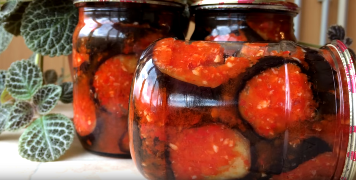 Ингредиенты: Рецепт баклажан на зиму это очень просто очень быстро. Для начала нужно подготовить банки их можно не стерилизовать достаточно попарить налив на них по пол банки кипятка. Баклажаны режем кольцами где-то сантиметра 2.Нарезанные баклажаны выкладываем слоями в большую миску и каждый слой присыпаем солью чтобы с них ушла горечь, и так она должно постоять полчаса. Баклажаны пока будут стоять нужно приготовим к ним заправку.Для приготовления заправки нам надо красный перец болгарский и острый перчик,чеснок теперь всё это пропускаем через мясорубку. Теперь в измельченную массу добавляем соли на вкус и сахара так же и 100 мл уксуса потом все тщательно перемешаем если она будет слишком густая можно добавить воды кипяченой.В сковороду наливаем масло и баклажаны обжариваем с каждой стороны. После обжарки в заранее приготовленные банки выкладываем баклажаны слоями,слой баклажан слой заправки теперь их пастеризуем 30 минут на водяной бане после уже закручивать