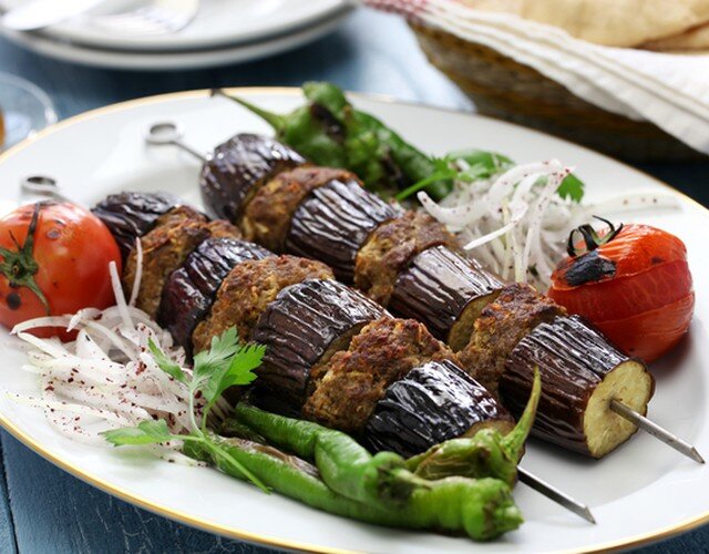Сентябрь заканчивается, значит недолго еще нам осталось баловать себя относительно недорогими овощными блюдами. А если еще и интересен рецепт, то это вообще удача! Мы очень любим баклажаны в любом сочетании с овощами, с мясом. На этот раз нашла интересный рецептик, баклажан-шашлык, его можно приготовить дома в духовке. А на вкус мясо с овощами получается просто изумительное. Я буду готовить в первый раз. На первый взгляд все сложно, но это только кажется. Главное, пошаговое приготовление. Сначала следует приготовить набор продуктов: Приготовление: Баклажаны нужно промыть, срезать плодоножку и , так называемую, "попку". Каждый баклажан нужно надеть на деревянный шампур и острым ножом снизу резать по спирали до другого края. Ширина каждого витка не более 1 см. У меня получилось чуть-чуть побольше. Все баклажанчики сложить в глубокое блюдо, положить соль 2 ст. ложки и залить водой. Сверху положить тарелку, так они не всплывут. Пока баклажаны "вымачиваются" в соленом растворе, н
