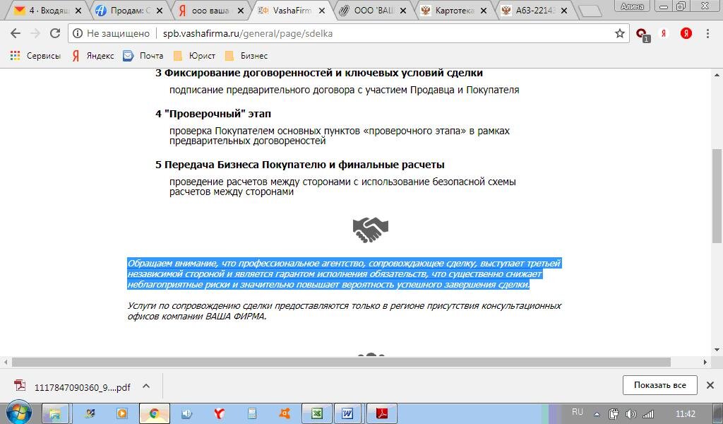 Просим Распространить и привлечь внимание общественности. Часть шестая из Шести Привью Потерпевшей: Я была уверена, что обратилась к профессионалам, в чем также меня убедила фраза: «Обращаем внимание, что профессиональное агентство, сопровождающее сделку, выступает третьей независимой стороной и является гарантом исполнения обязательств, что существенно снижает неблагоприятные риски и значительно повышает вероятность успешного завершения сделки.» На сегодняшний день имеем следующее: Следователи что видели данное дело говорят он наличии состава преступления, но по каким-то загадочным обстоятельствам следователи что вели дело имели резкую потерю памяти и забывали законы УКРФ. PS: На сегодняшний день Яковлев Алексей Николаевич занимается восстановлением подушек безопасности в автомобиле без лицензии завода изготовителя, те рискует жизнями своих клиентов и это не просто незнание закона, а умышленное мошенничество. ООО"ВАША ФИРМА" (брокер что не несет ответственности за то ,чем торгу