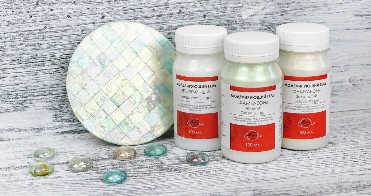 Отдельно стоит остановиться на прозрачном моделирующем геле. Уникальность этой геля состоит в том, что он прозрачен после высыхания, а значит, позволяет создавать объёмные элементы на уже нанесенных рисунках. Эта техника может использоваться в декупаже, в имитации мазков кисти при распечатке на холсте, создании рельефных поверхностей на стекле и многом другом.