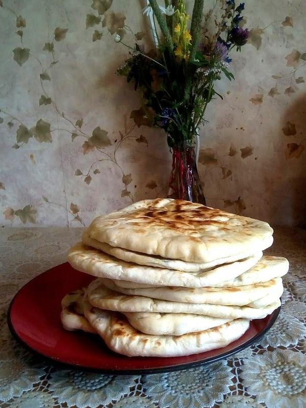 Рецепт очень простой, как все настоящие кавказские блюда. В основу теста для лепешек входит айран. Его можно заменить его кефиром, получится не менее вкусно. Самая распространенная и большинством любимая начинка - молодой сыр (брынза) с зеленью. 1. Смешать 250 г кефира с мукой (3 стакана - 0,5 кг), добавить соль и соду (по 0,5 чайной ложки). Тесто хорошо отбить и дать постоять около 30 минут. 2. Порубить пучок петрушки и пучок укропа, смешать с растертой брынзой (250г) Тесто разделить на 6 частей, скатать колобки, а из колобков раскатать лепешки. Выложить на готовую лепешку начинку (по объему начинки должно быть столько же, сколько и теста). 3. Лепешку собрать сверху узелком и хорошо защипнуть. Затем сначала руками сформировать лепешку (разровнять начинку), а после довести дело скалкой. Важно следить, чтобы хычины не порвались при раскатке. 4. Жарить хычины на хорошо раскаленной сковороде без масла с обеих сторон (2-3 минуты с каждой стороны). Готовые лепешки смазать растопленным сл