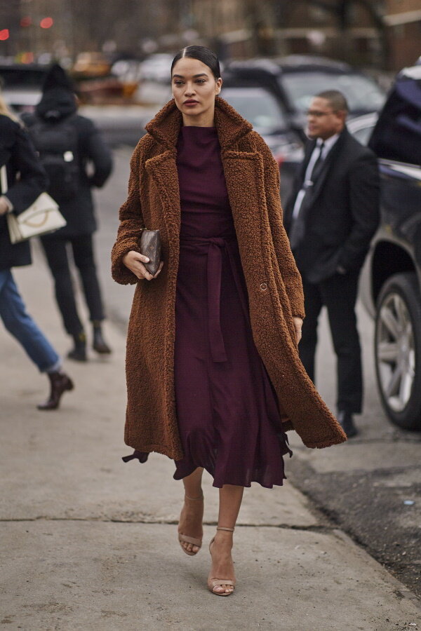 Модное баклажановое платье, нюдовые босоножки и искусственная шуба чебурашка. Идеальный женский осенний образ для похода на вечеринку. Пальто в клетку вцепилось крепкой хваткой и не собирается выходить из моды. Попробуйте носить клетку с плиссированной юбкой и высокими сапогами. Стильная фишка прошлого сезона – поясная сумка - тоже пригодится вам в эту осеннюю пору. Трендовые грубые ботинки в сочетании с нежнейшим платьем и кожаной курткой создаст восхитительный женский образ rock star. Возьмите на заметку кожаный total look, это трендовое течение не теряет своей актуальности осенью 2019. А если тотал лук кажется вам чем-то через-чур, то смело разбавляйте кожаный образ вещами других фактур. Замечательный уютный осенний женский образ можно создать с помощью простейших базовых вещей в стиле нормкор : прямых синих джинсов, кашемирового свитера, удлиненного пальто в клетку и ботинок челси. Леопардовые полусапожки «сделают» даже самый лаконичный простой осенний лук. Удлиненный клетчатый бле