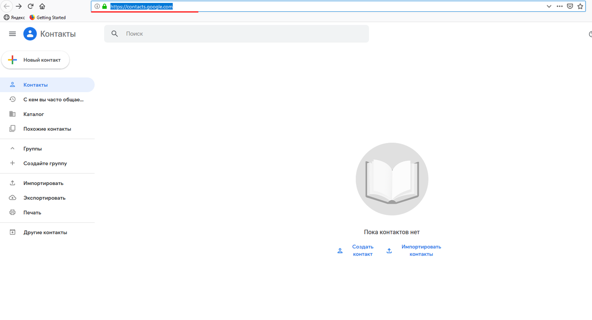Необходимо перейти в Контакты по ссылке contacts.google.com и справа вверху нажать на кнопку ”Новый контакт”: