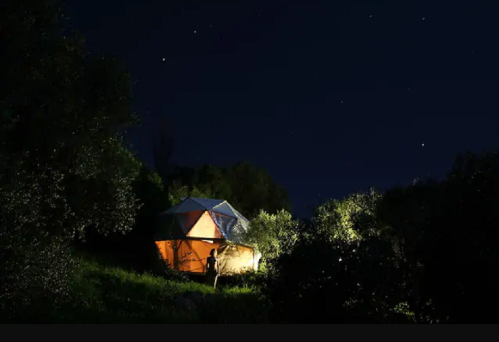 У подножия горной системы Cordilleras Béticas находится небольшая деревня Facinas, а рядом, в самом сердце природного парка Alcornocales, прячется геодезический купол для волшебного сна под звездами. Это часть загородного комплекса, включающего в себя еще недавно отремонтированный дом со столетней историей, в котором находится летняя кухня на открытом воздухе. В самом куполе размещается только кровать, прикроватный столик и плетеные кресла. Полностью укомплектованную ванную комнату можно найти рядом с ним. Гости могут пользоваться кухней главного дома, расположенного в нескольких метрах от их уникального жилища. Из купола открываются великолепные виды на местную долину и горные пейзажи. Отличный вариант для уединенного отдыха в окружении природы!