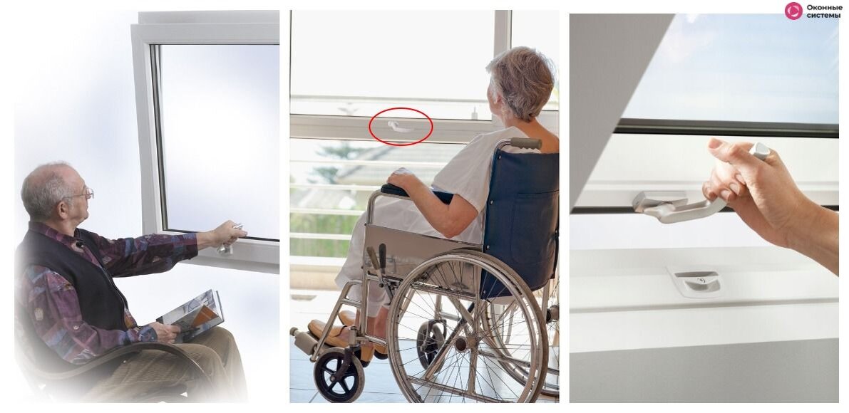 Человек, утративший двигательную или иную функцию организма, как правило, значительно ограничен в передвижении. В отличие от здоровых людей у него множество барьеров на пути, которые часто оказываются непреодолимыми. Сложно бывает выйти на лоджию, чтобы подышать свежим воздухом, или открыть окно. У рассчитанных на здоровых людей окон ручка находится слишком высоко, она недосягаема. Чтобы сделать жизнь человека с ограниченными возможностями проще, приятнее, удобнее, производители материалов для остекления предлагают различные инновации, опции для окон. Ручка со смещением вниз Компания Roto Frank, выпускающая оконную фурнитуру, разработала особый вид крепежа для маломобильных потребителей. Это смещенная вниз и более длинная ручка серии Roto NT Komfort. Она размещается на профиле горизонтально, требует меньше усилий для управления. Открывается сидящим возле окна человеком без особых усилий, автоматически, легко, безопасно. Чтобы всем членам семьи было удобно управлять остеклением, можно